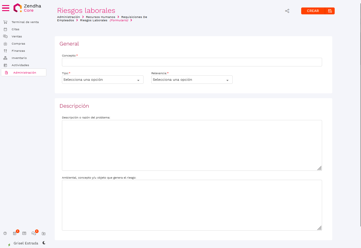 Vamos a Recursos humanos > Requisiciones de empleados > Notificación de riesgo laboral.