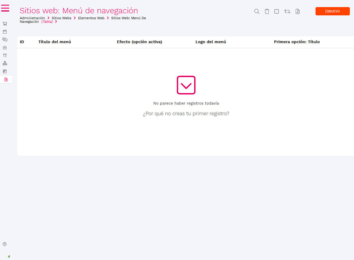 Si tenemos registros nos aparecerán en forma de lista, sino vamos a 'Nuevo'.