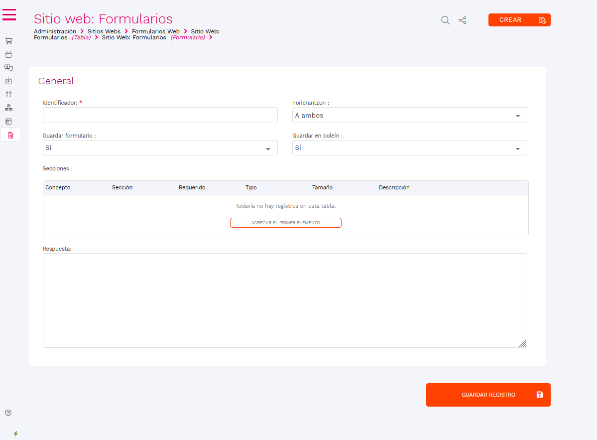 Vamos a Comunicaciones > Formularios web > Formularios web.