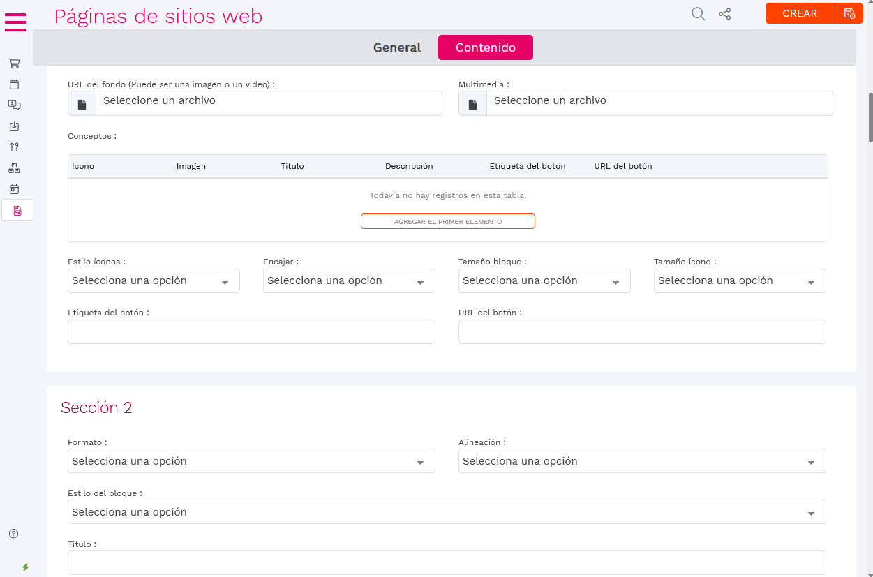 Estas configuraciones se repiten para un total de ocho secciones por página, lo cual es suficiente para la mayoría de los casos. La única diferencia con el encabezado de la página es que este no admite iconos en la sección de conceptos. Una vez que termines de configurar todos los elementos, simplemente haz clic en 'Guardar'. Si la página está marcada como activa, será accesible de manera pública desde la URL que definiste. Esto asegura que cada página del sitio tenga su propósito claro y esté lista para interactuar con los visitantes.