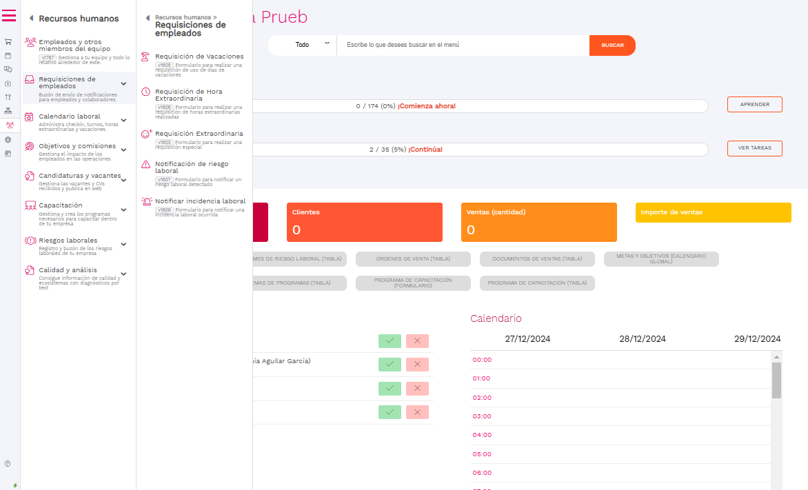 .Bien, en el centro existen una serie de módulos que corresponden a los buzones de los empleados. Estas son las peticiones que un empleado puede hacerle para la empresa por diferentes razones. Vacaciones, horas extras, incidencias, riesgos laborales, temas de calidad, etc. Estos buzones se gestionan desde recursos humanos, ¿de acuerdo? Puede ser que el menú se modifique porque eso no es la única opción, entonces va a pasar al padre, etc. Pero, en un principio, están dentro de recursos humanos por defecto. Dentro de los buzones nos encontramos dos apartados, la parte de requisiciones, que es una de los envíos, y luego están las partes de la administración de estas requisiciones. Ahí es donde la empresa podrá editar, aceptar, rechazar todos los procesos estos de recursos humanos. En el sistema, bueno, todas las requisiciones son seis módulos diferentes, generan obviamente un registro. Este registro lo encontramos dentro de la fecha de navegación del empleado y encontraremos peticiones de horas extras, de vacaciones, de riesgos extraordinarias, de incidencias, lo que fue. Lo encontramos ahí y listo. Ahí lo tendríamos. En un principio, la razón por la que un empleado no pudiese acceder a los buzones es que no tenga permiso. Ya está. No hay más vuelta. .