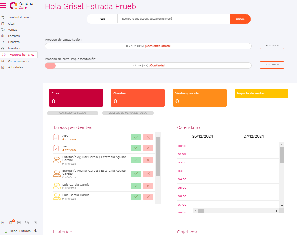Zendha Core está preparada para abrir incidencias de calidad en casi todos los campos disponibles, por lo que no hay un espacio definido para ello, sin embargo sí hay un espacio definido para la calidad dentro del menú Recursos humanos.