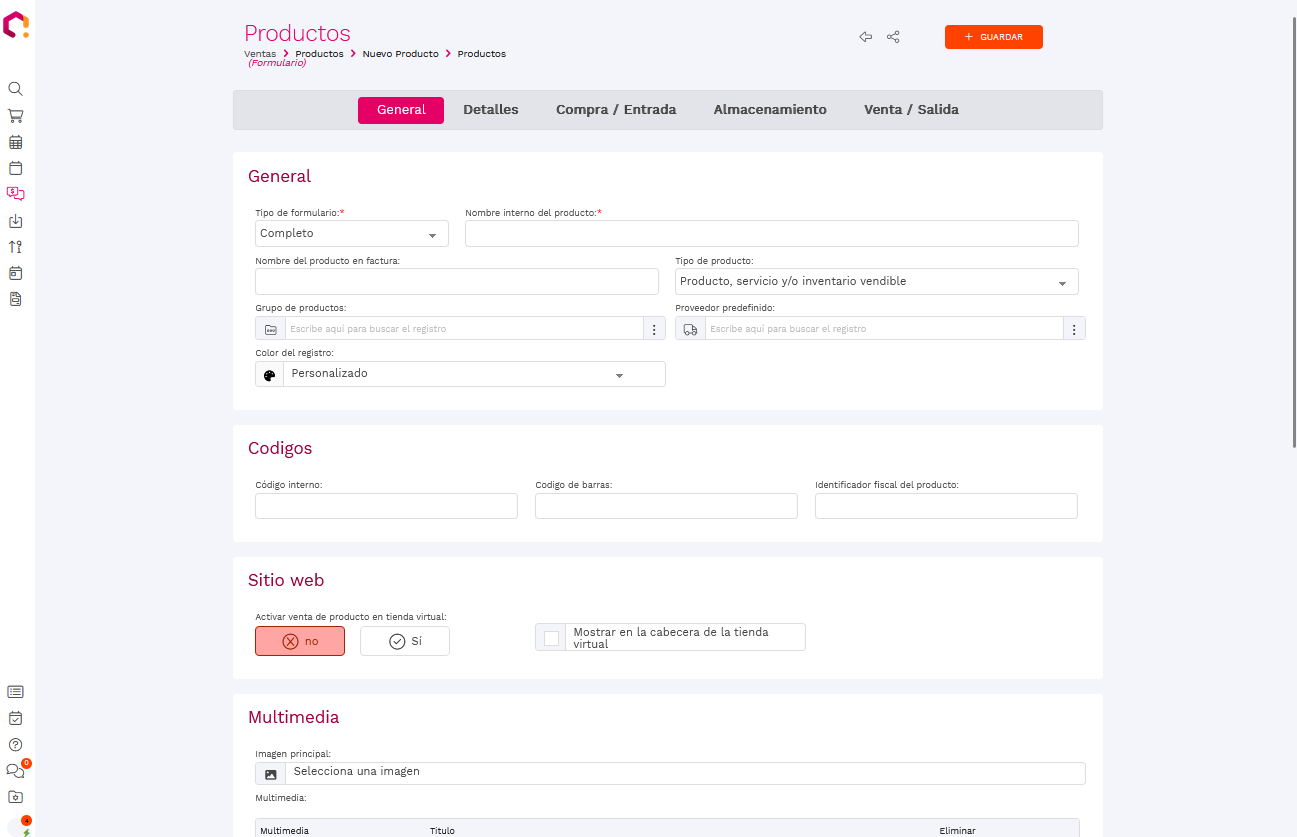 La información se organiza en secciones y pestañas para que puedas consultarla o editarla fácilmente. Por ejemplo: en un módulo de cliente verás pestañas para datos generales, direcciones y contactos.