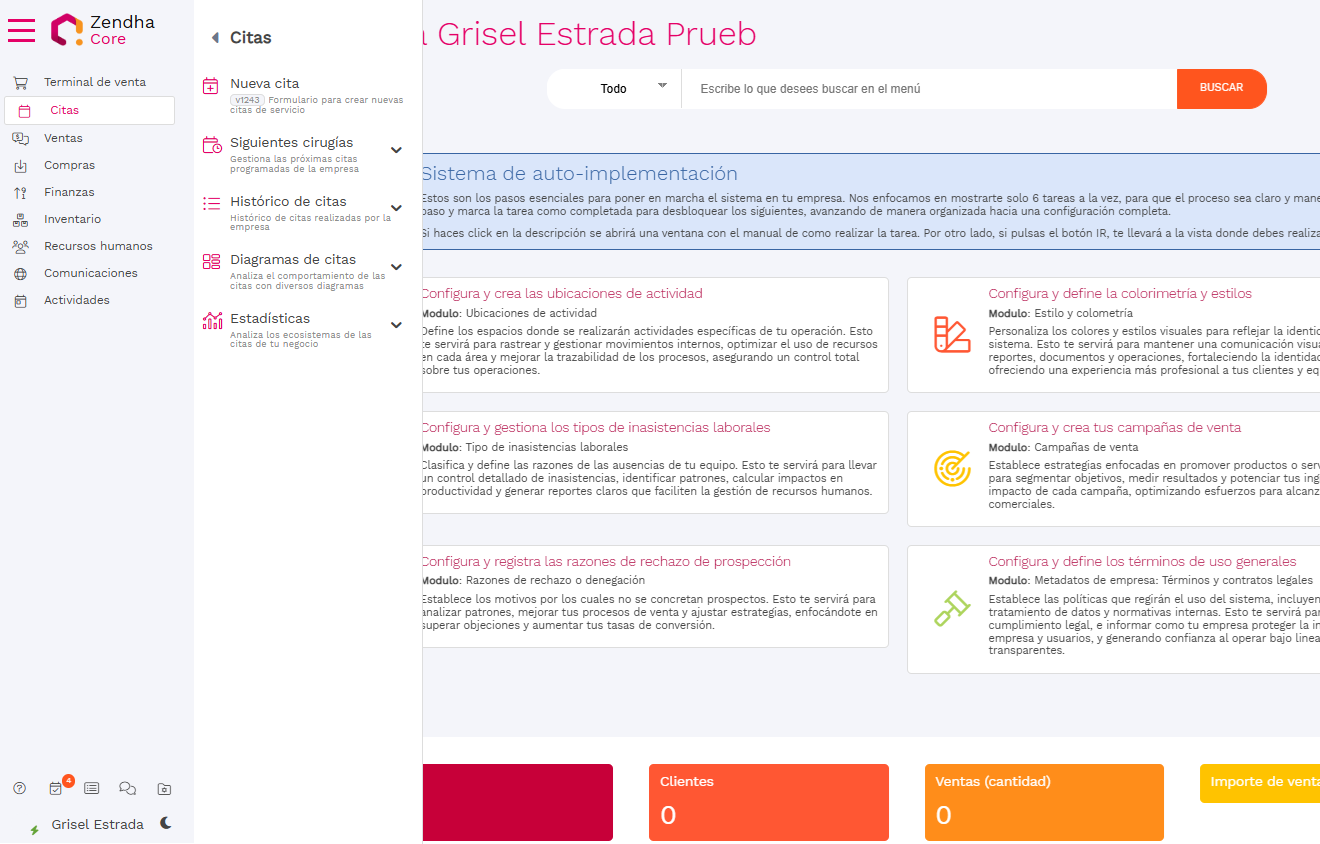 En el centro de la pantalla se encuentra el área principal de trabajo. Esta zona se adapta según el módulo que elijas y puede mostrarte tablas, formularios o gráficos.