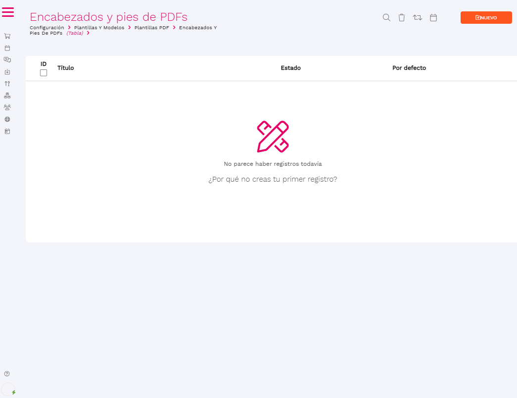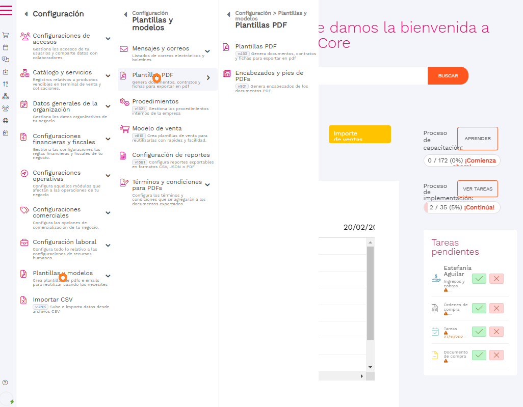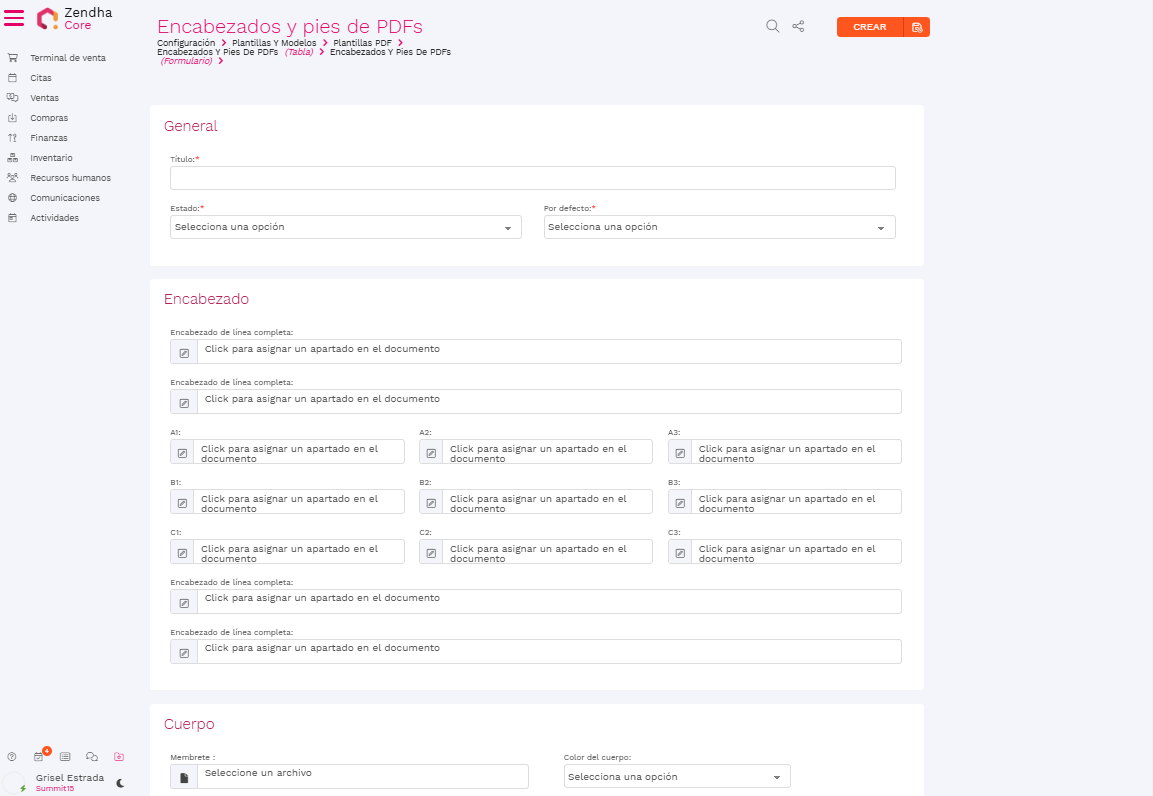 Antes de generar un PDF, primero necesitas configurar una plantilla con el diseño que deseas. Desde la sección de configuraciones puedes definir: