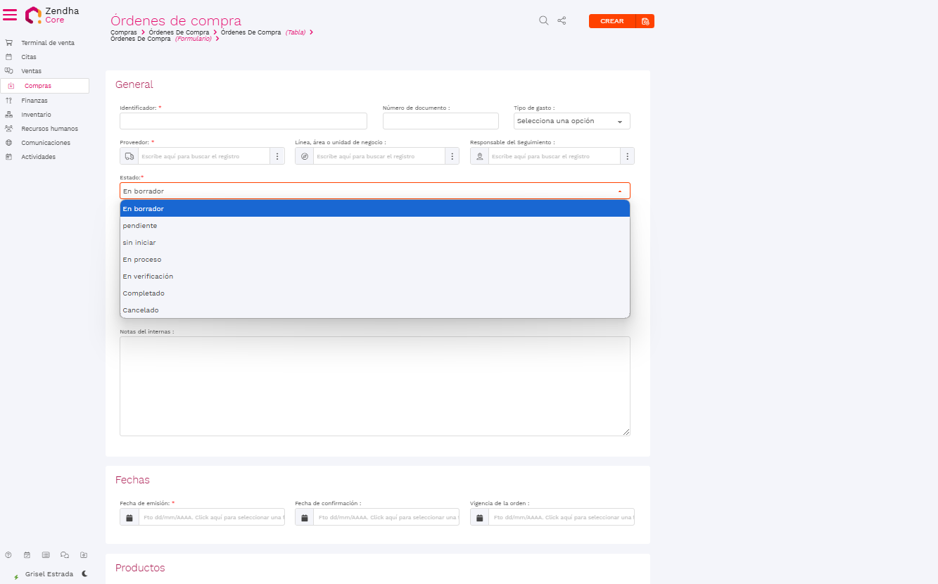 En Zendha Core, el módulo de órdenes de compra te permite controlar y organizar todo el proceso de adquisiciones en tu empresa. Se conecta hacia áreas clave como compras, finanzas y almacén, facilitando que cada paso desde la solicitud hasta la recepción se realice de forma ordenada.